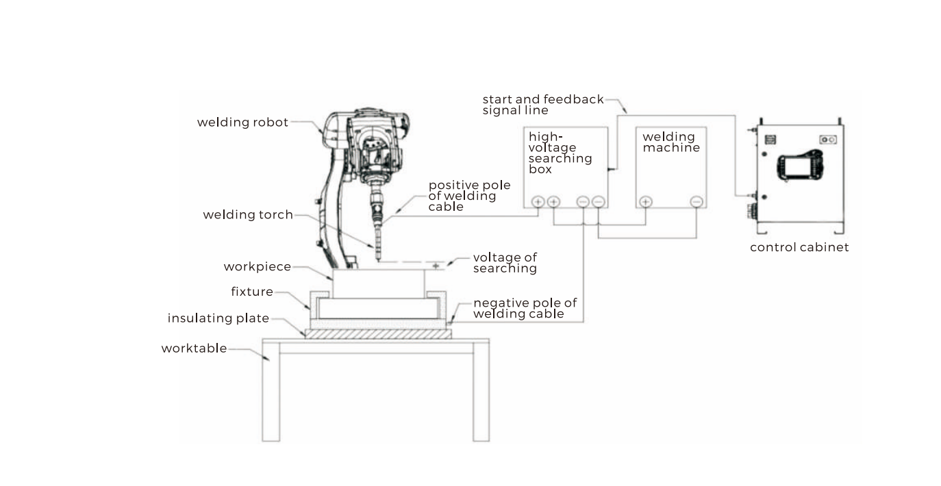 feedbacks the signal that the welding wire hits the workpiece, the robot automatically calculates the position deviation,