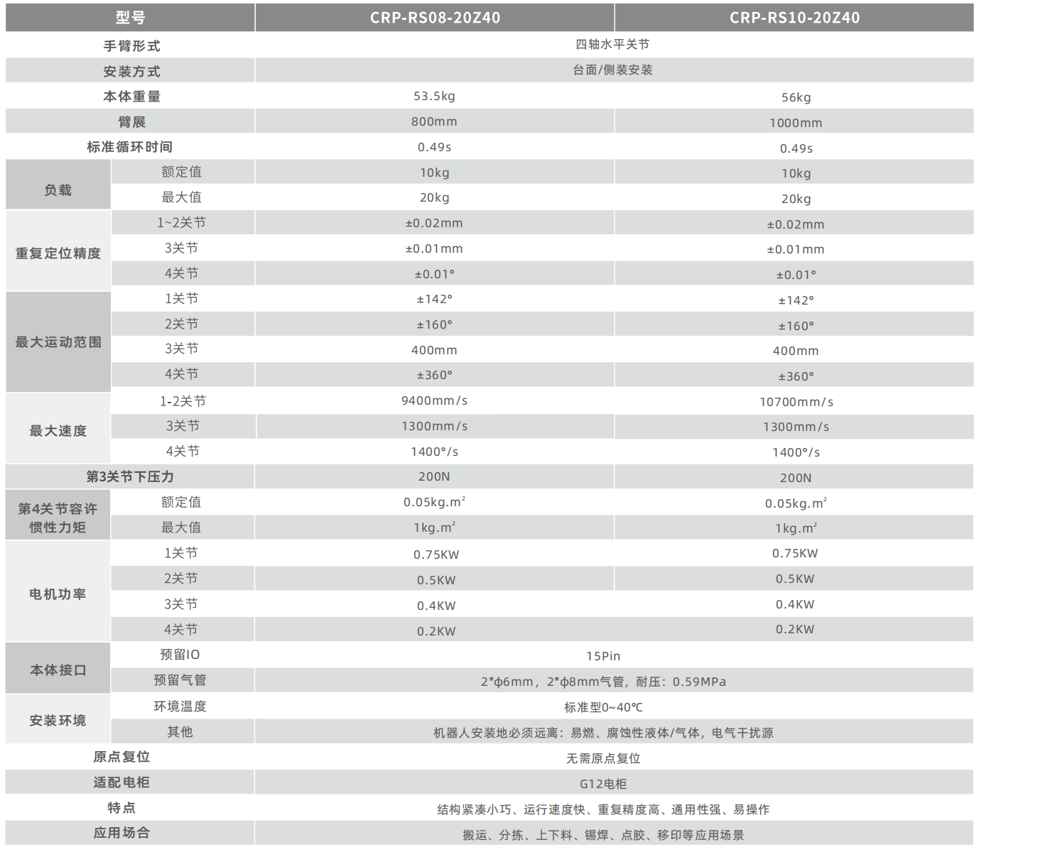 • 可提供1000毫米臂长规格,最高有效负载可达20kg,额定有效负载为10kg。